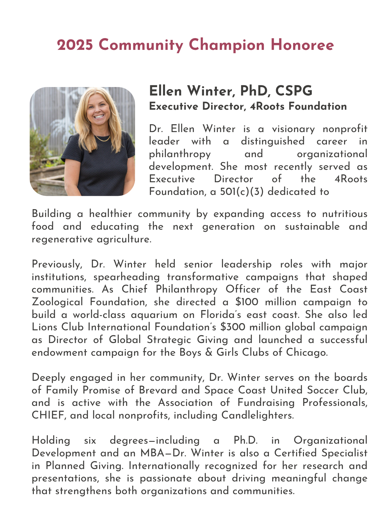 A special note of gratitude to the Women's Achievement Awards Steering Committee for their countless hours of work and dedication to our vision of Empowering and Embracing Women to Serve Central Florida. We had a wonderful evening full of memories that all present will remember forever. Thank you to all honorees who shared their testimonials and brightened our lives with great advice and their leadership perspectives.